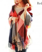 Discountfan Winter Long Soft Warm Tartan Check Scarves Wraps for women Wool Spinning Tassel Shawl Long Stole