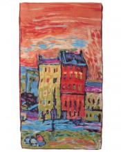 Elegna Luxurious 100% Charmeuse Silk Art Collection Long Scarf Houses in Munich