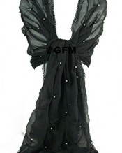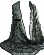 GFM Beautiful Pearl Embellished (ST2-PL-KL) Sheer Fabric Evening Wear Wrap Shawl Scarf For Weddings Bridal Bridesmaids