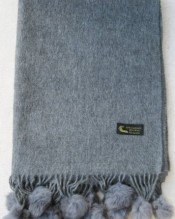 Grey Cashmere & Wool Shawl Scarf Wrap With Fur Pom Poms By Handbag Bliss!