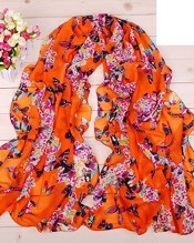 Hengsong–Lady Chiffon Butterfly Prints Neck Shawl Beach Scarf Scarves Wrap Stay Warm (Orange)