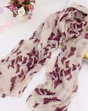 Kobwa(TM) Beige Charming Elegant Lady Butterfly Print Soft Long Scarf Wrap Shawl With Kobwa’s Keyring