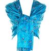 Ladies Beautiful Blue Silk Embroided Wrap Scarf Shawl Stole Pashmina