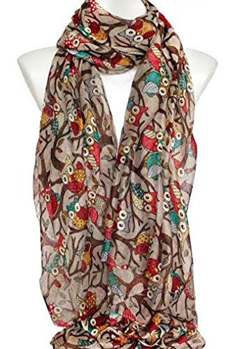 Owl Print Large Maxi Scarf Scarves Stole Wrap Shawl Sarong in Pastel Colours (Brown)