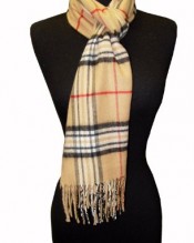 Peach Couture – Unisex Luxury Cashmere Feel Plaid – Solid Tassel End Warm Scarves (Camel Plaid)