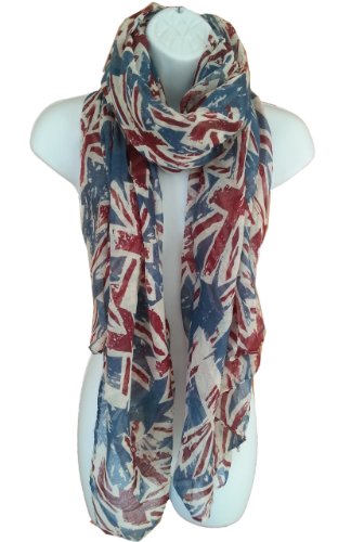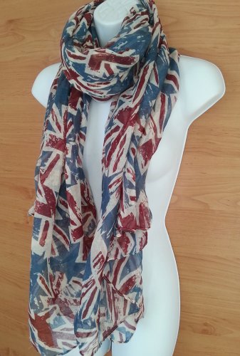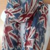 UK Flag Print Scarf Union Jack Womens London Fashion Denim Blue