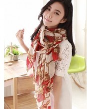 Womdee(TM) Silky Feel Chiffon Traveler Chain Print Women Scarf Wrap Long Shawls-Red & Beige With Womdee Accessory