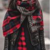 Women’s Large Red Warm Tartan Check Shawl Scarf Wrap Stole Plaid Reversible