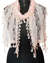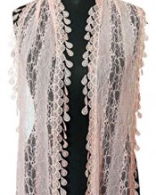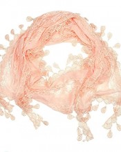 Women’s Lightweight Summer Lace Neck Long Scarf (Peach)