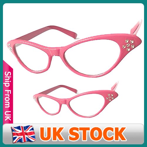 Beyondfashion 50’s Grease Ladies Rock and Roll Fancy Dress Glasses (Pink)