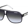Carrera Unisex Grand Prix 2 Plastic Sunglasses : Black / White plastic frame, Dark grey gradient plastic lenses, rectangular shaped. Product comes with an original Carrera carrying case, cleaning cloth and manufacturer’s booklet.
