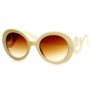 Designer inspired round oversized silhouette frame with elegant baroque-inspired swirled arms. With all the distinct high fashion details its no surprise why these sunnies are loved and worn by so many celebrities. Made from acetate based frame, metal hinges and gradient polycarbonate UV protected lenses.