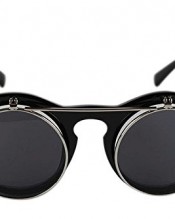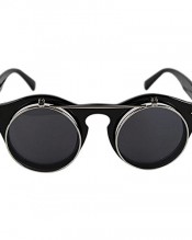 Enjoydeal Retro Fashion 2in1 Round Frame Cool Sunglasses+ Plain Glasses Unisex Anti-UV Goggles (Black+ Gold Frame)