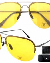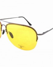 Eyekepper Stainless Steel Frame Spring Hinged Temple Aviator Half-rim Yellow PC lens Night Driving Glasses Gunmetal