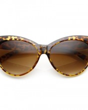 Large elegant cat eye frame that feature round curves, exaggerated pointed corners and small metal rivets on the temple. Made with an acetate based frame, metal hinges and polycarbonate UV protected lenses.