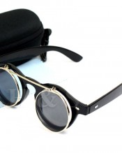 H&S® Flip Up Steampunk Sunglasses 50s Round Glasses Cyber Goggles Vintage Retro Style + Case (Black)