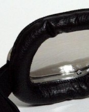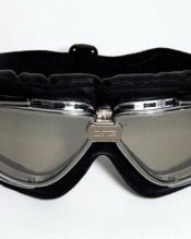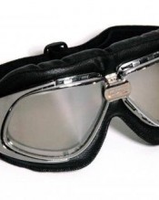 Motorcycle goggles black, mirrored lenses, chrome frame, REAL-LEATHER
