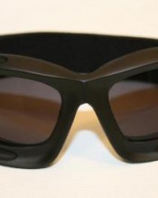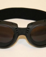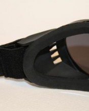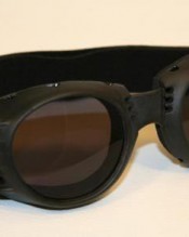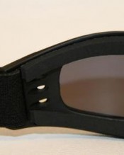 Motorcycle goggles black, smoke-tinted lenses, black frame, SPR rubber