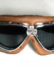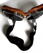 Motorcycle goggles brown, smoke-tinted lenses, chrome frame, REAL-LEATHER