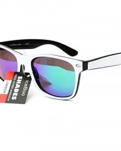 New Wayfarer Sunglasses Two tone reflective lenses Vintage Retro Classic Mens Womens UV400 (White & Black frame Blue reflective Lens)