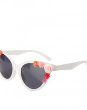 Oversized Cat Eyes 50’s Style Sunglasses with Flower Embellishment (White, Black)