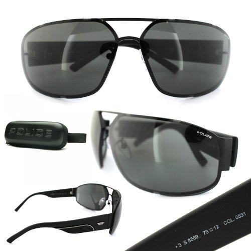 Police Sunglasses 8569 531 Matt Black Grey Green are an excellent sporty wrap around frame with the lens over the top of the frame to give a kind of rimless look that is really cool. This is accentuated with some cool styling along the arms and P Police wings logo.