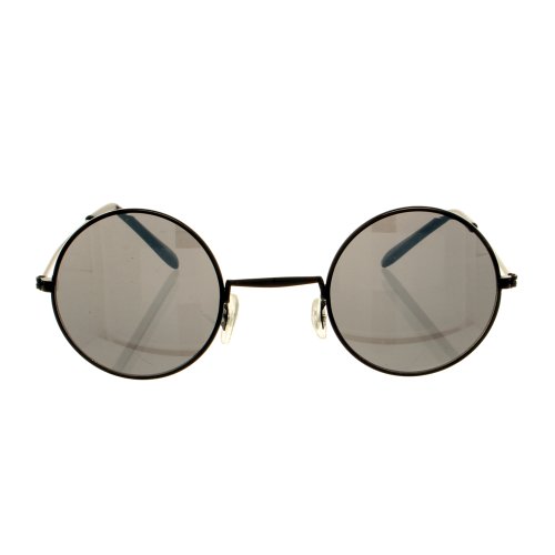 Small Round ‘John Lennon’ Style Sunglasses with Black Frame & Black Tinted Lenses