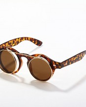 Steampunk Goggles Glasses Round Sunglasses Emo Retro Vintage Flip Up Cyber Punk (Leopard)