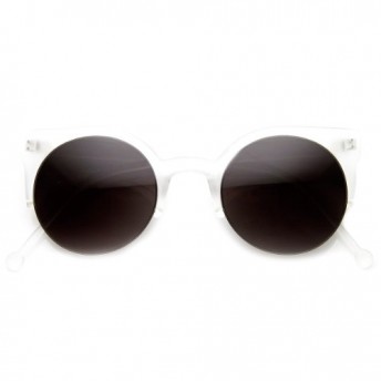 Womens Fashion Half Frame Round Cateye Sunglasses (Frost )