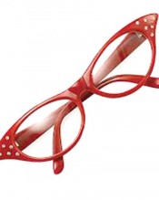Womens Girls 50s Rock Roll Retro Grease Poodle Scarf Glasses Fancy Dress Costume RED GLASSES