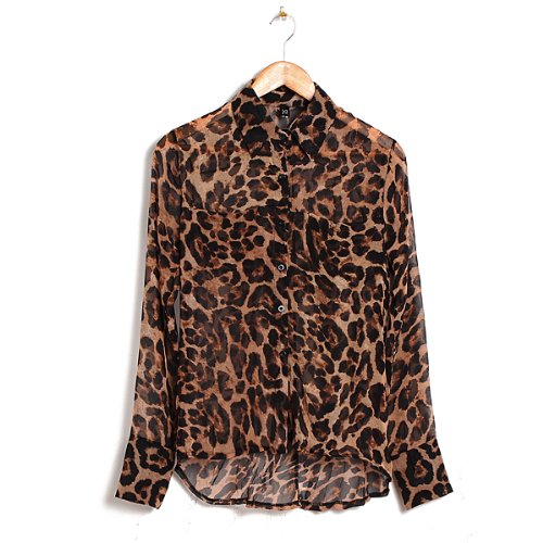 14 Sexy Womens Leopard Animal Print Tops Loose Chiffon Shirt Collar Blouse