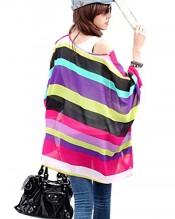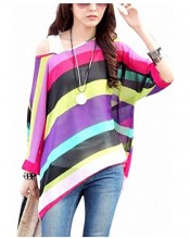 304Stripe Bohemian Hippie Big Size Batwing Sleeve Chiffon Blouse Loose Off Shoulder Shirt