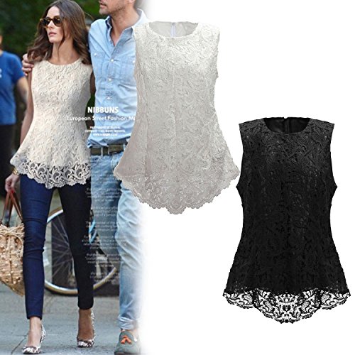 Aitao Womens Ladies Sexy Hot Sheer Lace Sleeveless Embroidery Floral Lace Flared Peplum Crochet Top Tee T-Shirt Vest Blouse Shirt
