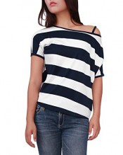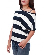Allegra K Ladies Asymmetric Neckline Top Dolman Sleeve Top Stripe Top T Shirts