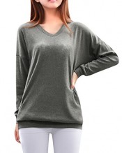 Allegra K Ladies V Neck T Shirt Batwing Top Casual Tops Loose Hoodies Blouses