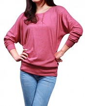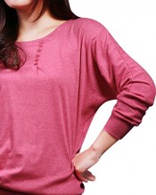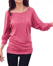 • Features: Boat Neck, Batwing style Long Sleeve, Slanted Buttons Decor Front, Ribbed Cuff and Trim Shirt.