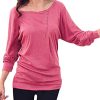 - Features: Boat Neck, Batwing style Long Sleeve, Slanted Buttons Decor Front, Ribbed Cuff and Trim Shirt.