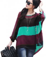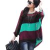 Allegra K Women Loose Boat Neck Cape Sleeve Colorblock Striped Shirt w Tank Top