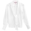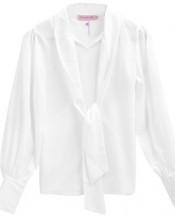 - Long Puff Sleeve, Tie-bow Neck, Semi Sheer, Pullover, Buttoned Cuff, Ruffled, Self Tie Strap Front.