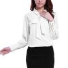 Allegra K Women Tie-bow Neck Puff Sleeve Top Sheer Chiffon Tops Office Shirt