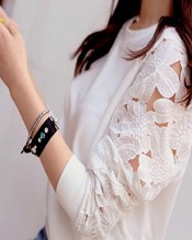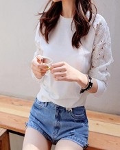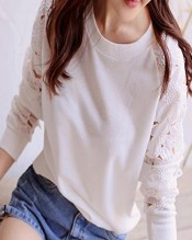 Hollow Long Sleeve Embroidery Lace T Shirt