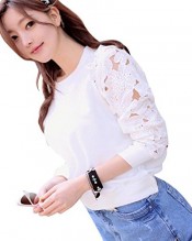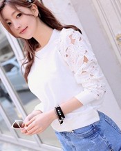 Amonfineshop(TM) Fashion Women Hollow Long Sleeve Embroidery Lace T Shirt Blouse (L)
