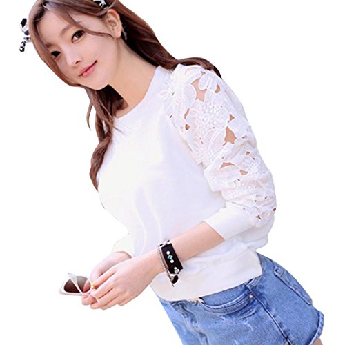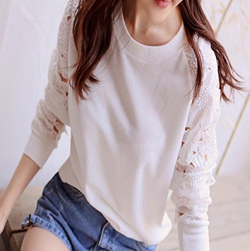 Amonfineshop(TM) Fashion Women Hollow Long Sleeve Embroidery Lace T Shirt Blouse (L)