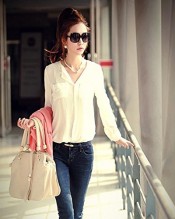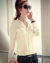 Long Sleeve OL Career Chiffon Button Down Shirt