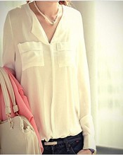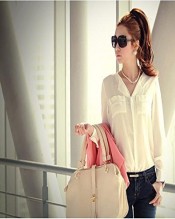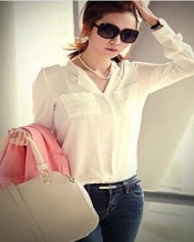 Amonfineshop(TM) Womens Long Sleeve OL Career Chiffon Button Down Shirt Top Blouse (S, White)