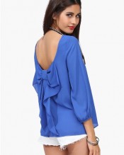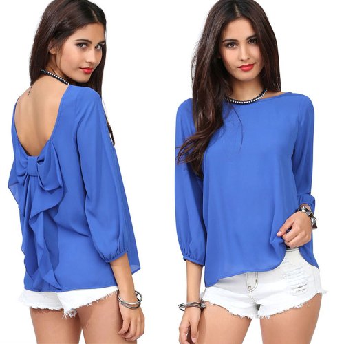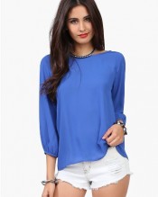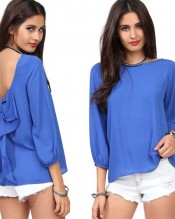 atdoshop 1PC Fashion Lady Chiffon Long Sleeve Sexy Loose Tops Blouse T-Shirt (XL, Blue)