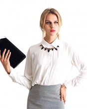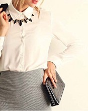 Atodoshop(TM) Lapel Collar Button Chiffon Long Sleeve Shirt Blouse Tops (XL, White)
