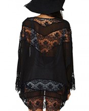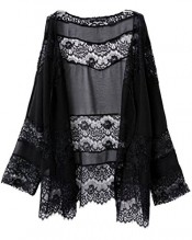 A&Z Sexy Women Hollow Lace Spliced Chiffon Kimono Top Blouse Cardigan Shawl Coat (L Sleeve Length:66cm Length:69cm)