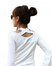 Bepei Fashion Slim Fitted Long Lantern Sleeves Shirt Boat Neck Both Shoulder Belt Japan Style Tops S M L XL Size BLACK & WHITE Basic Shirt BLACK WHITE-S M L XL Size