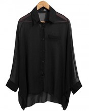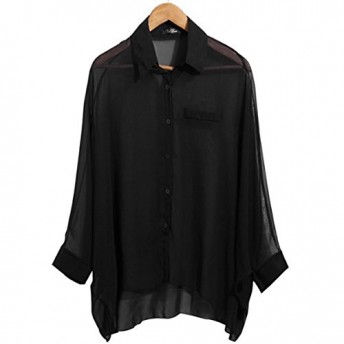 Black Sexy Womens Batwing Sleeve Chiffon Shirt Asym Hem Sheer Blouse Oversized Tops